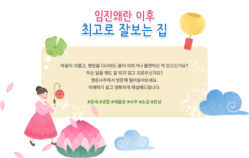 행운사주는 족집게 같은 명쾌한 풀이를 드립니다. 줄서서 사주 받는 바로 그곳!
