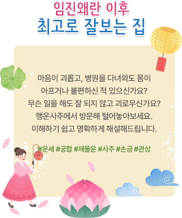 행운사주는 족집게 같은 명쾌한 풀이를 드립니다. 줄서서 사주 받는 바로 그곳!